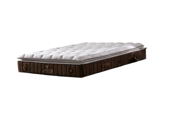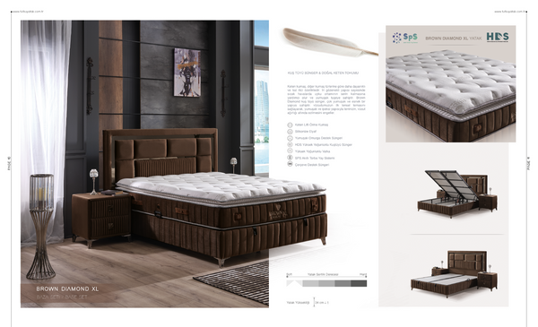 Основни характеристики на матрака: Капитонирана дамаска от лен и памук: Изключително здрава и устойчива на износване, осигурява дишаща структура за оптимален комфорт. Силиконови влакна: Допринасят за мекота и лекота. Мека опора за гръбначния стълб: Подкрепя правилната позиция на тялото по време на сън. HDS слой с висока плътност: Гарантира дълготрайна стабилност и комфорт. SPS система с интелигентни пружини: Осигурява перфектна адаптация към формата на тялото и равномерно разпределение на тежестта. Допълнителна странична опора: Предпазва матрака от деформация. Височина на матрака: 34 см (+/- 1 см). Степен на твърдост: Средна към твърда – идеална за оптимална поддръжка на тялото. Предимства: Подходящ за хора с проблеми в гръбначния стълб или нужда от специална опора. Елегантен дизайн, който придава стил на всяка спалня. Модерна технология за комфорт и здравословен сън. Изберете Brown Diamond XL за първокласно качество и уют в дома си!